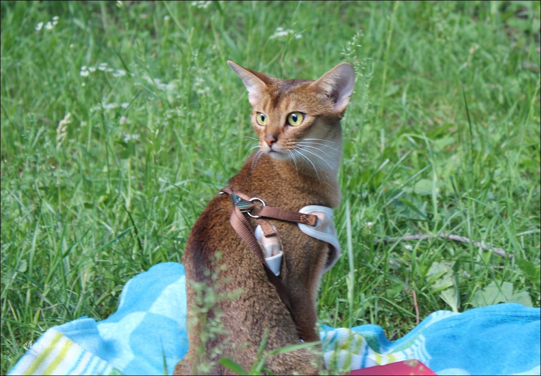 | Разные особи кошек по разному ведут себя на природе. Даже если речь идет о родственниках. Несколько лет назад мы вывозили на природу Ривушку. Она вся дрожала и пугалась. Когда же отдыхали в Крыму, Ривушка под присмотром ходила в пределах огороженной территории без поводка и даже не порывалась перескочить через забор. Ей это настолько понравилось, что шла обратно в дом она крайне нехотя. Кошка Бекки - уникальный кошачий турист. Я обожаю путешествовать именно с ней. Она дает возможность полюбоваться красотами природы, ходит сама спокойно рядом на поводке. Преодолевает приличные для кошачьих дистанции на своих четырех лапках, и удобно располагается на плечах, если устает. При этом умудряется еще мурлыкать и нежно покусывать ушко хозяйке. В этом сезоне Бекки открыла для себя и для нас Голубое озеро под Казанью. Вот кот Эльдар, казалось бы, уже знает выгул не в первый раз. Но последняя поездка, похоже, привела его обычно невозмутимый внешний вид в состояние удивления и возмущения по поводу навязывания его личности мнимых удовольствий. А ездили то всего-навсего в место, где река Кама сливается с Волгой. Это место является привлекательным для туристов как своим пейзажем, похожим на бескрайнее море, так и юрьевской пещерой, гипсовой штольней. Здесь тренируются альпинисты и спелеологи. Так что Эльдарчику предстоял небольшой рискованный спуск с горы к Каме, а потом такой же крутой обратный подъем. Но надо отдать коту честь - он не выпустил ни когтя, хотя был на шлейке, и перемещался то ножками, то на плечах, то на руках, а то и элементарно за натянутый поводок втаскивался )) Но храбрый рыжий парень испугался не спусков и подъемов, жары и комаров, а легкой речной волны... |