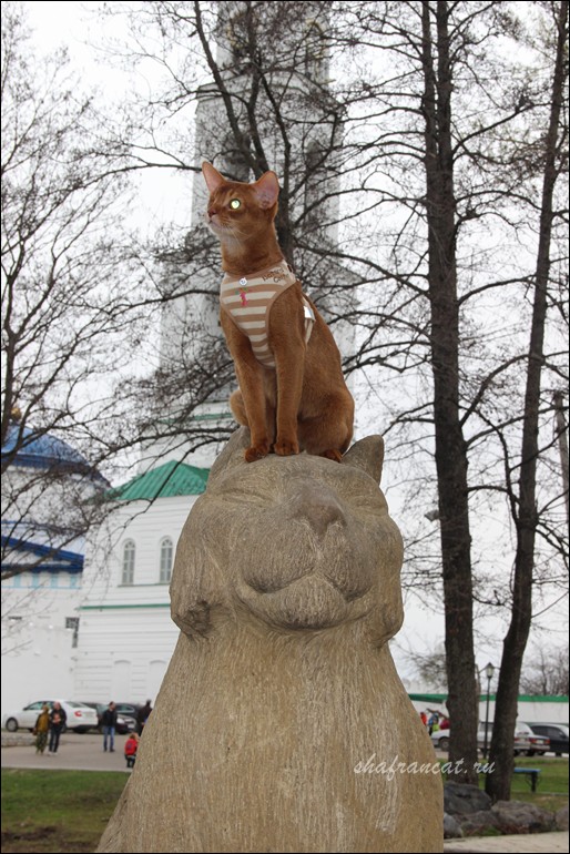 В Пасхальное воскресенье съездили отдохнуть за город, посетив при этом Раифский монастырь. Посетили не сами, а прихватив с собой абиссинского кота Shafran Virakocha, в быту - Винтик. Сама по себе природа Татарстана очень красива, в любое время года. Весна здесь поздняя, в сравнении с Украиной, непривычно поздно зацветают одуванчики, распускается листва, 1 мая сиренью даже не пахнет. Но есть в этом и свой плюс - воздух дольше кажется звонким, пробуждение природы плавным и чистым. Винтик в поездке первый раз. Давно, в три месяца, он ездил в ветеринарную клинику, после этого кот не то, что на природе, а и в машине никогда не бывал. Итак, шлейка на Винтика надета, вперед, к машине. Вертится, мяукает. Устроил в салоне балаган. Лез не просто на руки, а и на плечи, на голову, как лапами, так и хвостом. Беспрестанное "Мяу". Хорошо, что голос у него милый и приятный. И вот, наконец, территория Волжско-Камского заповедника, в его Раифской части. Тормозим машину, берем Винтика, выходим. Красота вокруг, все таки. А вдоль дороги упертые одуванчики пробивали себе путь к солнцу. По пути мелькают небольшие болотца. Побывав на природе, Винтик немного успокаивается и последние пять минут до Раифского монастыря едет тихо и смирно. Я уже писала, что местные как христианские монастыри, так и мусульманские мечети импонируют своей не показной, а настоящей и открытой любовью к кошкам. Их здесь кормят, не ставят строгих запретов на вход с ними на территорию монастырей. Местные коты-старожилы даже выясняют отношения между собой, лишь слегка черный громадина обернулся на мои отвлекающие маневры, так он был занят бубнением на соперника, мудро делающего полудремающий вид постигшего дао. Винтюша же был взгроможден на каменного Кота Раифского и запечатлен в разных позах. Рекомендуем, даже если у вас всего лишь половина свободного дня на выходных, вы живете в Казани или ее окрестностях, и никогда не были в Раифском монастыре, посетить это замечательное место и отдохнуть. |