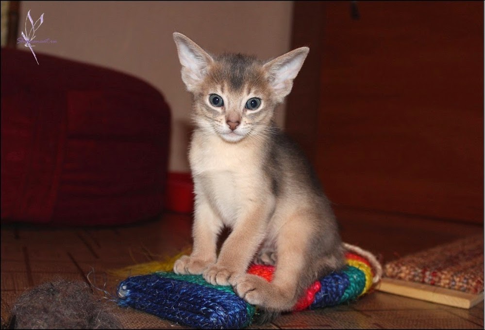 Один из троицы нежных и голубых малышей пометов M&N, это Ганя, Shafran Murugan. Абиссинский голубчик любит мурлыкать и строить глазки. Мамин котенок, похож мордашкой на Бекки, только окрас другой. Пока играет, то становится неуловим, словно "Голубая стрела". ![]() Как только ребенок поест, его начинает давить груз ответственности, причем не сразу: по мере движения груза ответственности к желудку активность какая-то минут пятнадцать еще держится, а потом груз почему то начинает давить на глаза, причем в любом месте можно быть застигнутым этим грузом. На доске-точилке для ногтей, к примеру, как это случилось с братом Гани - Михаем. За пару секунд до дремоты: Потом остается перенести ребенка "у лижечко ("кровать" по-украински). Двоюродная сестричка, маленькая Пеппи сладко прижмется, и вместе спать теплее и уютнее. ![]() |