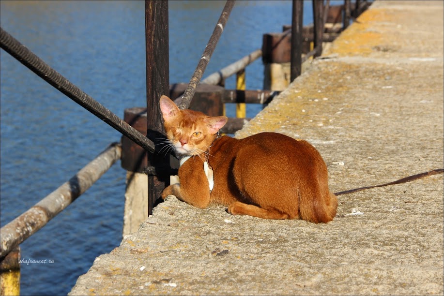 Решили, точнее, я решила, а мужу пришлось принять уже как данность, рискнуть и взять в поездку не кота с кошкой или с котенком, а сразу двух котов - двух соперников, взрослых, которые дома дерутся друг с другом как за девочек, так и за территорию. Вначале в машину был посажен Винтик - Shafran Viracocha, а вслед за ним Ян - CH Shafran Yankovsky. Удивили они сразу. Винтик дома нападает на Яна, выслеживает его, контролирует, куда тот идет. Ян побаивается Винтика и прячется. В машине Винтик стал орать и жаловаться на нелегкую жизнь красивого рыжего одноглазого кота. Как только рядом оказался Ян, они снюхались, Винт успокоился, и легли вдвоем под сиденье авто, периодически меняя положение, то хвост к хвосту, то морда к морде. Мы переживали прежде всего, что в машине эти двое устроят драку и на стеклах будут клочья шерсти и брызги кошачьих плевков. Шикарно ошиблись. Так что имейте в виду, что даже враги в походах могут становиться друзьями.