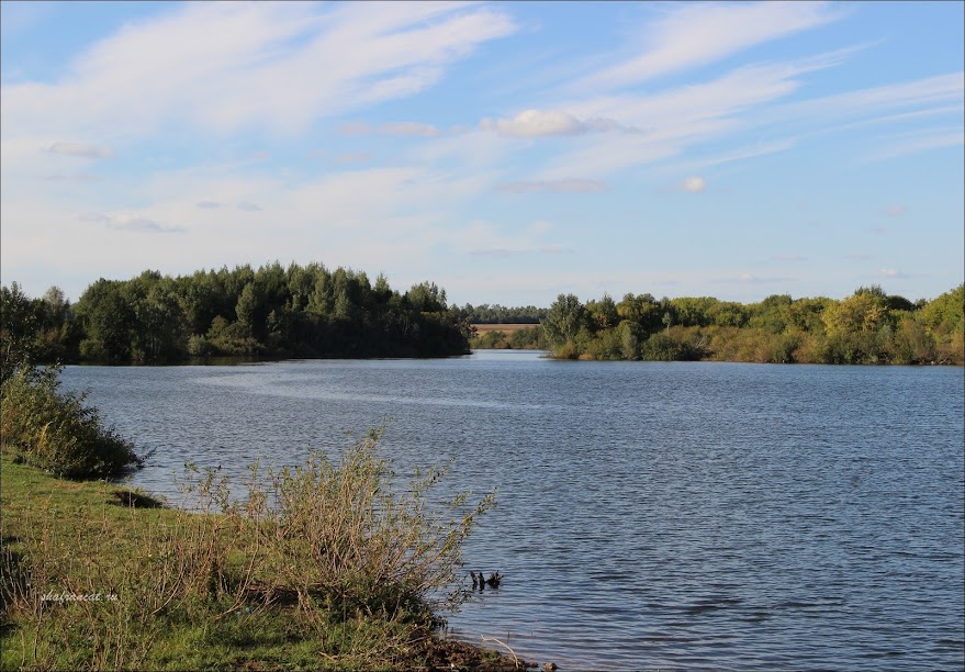 В селе при въезде спросить о городище было не у кого. Мы свернули с дороги налево и оказались возле небольшого озерца. Рядом протекала речушка с незамысловатым названием Ручей. Только в селе она была неширокая. Позже мы попали на другое озеро, с плотиной, образованное этой же рекой. Там Ручей гораздо шире.