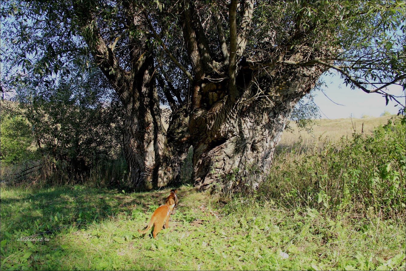 В ходе прогулки мы попали на небольшую поляну, перейдя мост через реку. Многолетние широкоствольные вербы привлекли внимание котов. Место занимательно тем, что в него часто попадают молнии. Коты благоустроились в дупле ствола вербы, образовавшегося в результате такого попадания. Несколько деревьев так же были выжжены молниями. Существуют на планете такие аномальные зоны, в которые молнии притягиваются. Вспомнилась крупная авиационная катастрофа Ту-154 близ поселка Сухая Балка под Донецком в Украине, произошедшая в 2006 г. Авиалайнер Ту-154М российской авиакомпании «Пулково» выполнял плановый пассажирский рейс PLK-612 из Анапы в Санкт-Петербург, но над Донецкой областью столкнулся с сильной грозой. Экипаж запросил у диспетчера разрешение на более высокий эшелон полёта, но затем авиалайнер начал быстро терять высоту, а через три минуты разбился. В катастрофе погибли все находившиеся на борту 160 пассажиров и 10 членов экипажа. Мы часто проезжали то место. Оно по своему внешнему виду представляло собой очень похожую на встреченную в Иске-Юрте балку: речка, поляна, среди степи густая роща. И это место тоже как магнитом притягивает молнии.