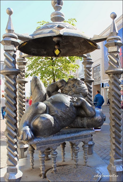 Татарстан, Казань и кошки Очень давно, когда еще царь Иван Грозный не завоевал Казанское ханство, существовало на территории нынешнего Татарстана Булгарское царство. Оно было образовано племенами болгар. Да, тех самых, которые ныне проживают на берегах Черного моря. В результате тесных торговых и политических связей с мусульманским арабским миром, удобного расположения, Булгария к X веку становится одним из сильных и высокоразвитых государств Среднего Поволжья. Булгары вели торговые отношения не только с восточными и южными государствами, у них даже были договора с Киевской Русью, а в бытность выбора религии князем Владимиром перед крещением Руси даже засылались в Киев послы с предложением принять мусульманство. Как и у любого народа, были у волжских болгар свои божества и символы. Одним из наиболее почитаемых и сильных символов-тотемов был крылатый барс. Образ диких кошачьих нашел свое олицетворение не только в верованиях у древних волжских болгар, но и в украшениях, и в бытовой утвари. Равно как солнце являлось божеством у многих народов мира и изображалось на гербах, денежных знаках, так и дикие кошки становились геральдическими символами. В гербе Республики Татарстан барс - покровитель граждан республики и её народа. Барс изображён на фоне красного диска солнца. Красное солнце на гербе Татарстана означает доброе знамение, успех, счастье, жизнь. Гуляя по Казани, обращаешь внимание на невольно возникающую ассоциативность этого города с другим городом на реке - Санкт-Петербургом. Только больше света, больше солнца. И дикие кошки являются атрибутом обоих городов. То ли Петр I хотел внести какую то символичность, взяв за образец этот город на Волге, то ли в этом был некий политический замысел. Но факт остается фактом. Более того, именно казанские домашние кошки стали одними из первых кошек Петербурга. В средневековой Руси были очень популярны лубочные картинки на сюжеты «Как мыши кота хоронили» и «Кот Казанский». По одной из версий, лубок «Кот казанский» был ничем иным, как пародией на облик царя Петра I (усы и выпученные глаза действительно его чем-то напоминают). Такие лубки с котом-царем появились в конце VIII века, очень уж тяжело народ нововведения принимал. «Как мыши кота хоронили» — это серия смешных картинок, где каждой мышке-участнице похорон посвящен шуточный текст. Кстати, такие картинки хранятся даже в Русском музее в Санкт Петербурге. Также надо отметить, что кот то на похоронах – живой! Почти всегда в зубах он держит мышь, как бы наказывая глупых хвостатых. Согласно одной из марийских легенд, именно кот спас последнего из казанских ханов. Случилось это во времена, когда Иван Грозный со своими войсками осаждал Казань. Цари из марийского рода, Йоланда и Акпарс, решили выслужиться перед русским царем, сделать подкоп под Кремль, и принести хана с семьей в качестве трофея русским. Намечено сие действо было на ночь, чтобы никто ничего не заподозрил. Однако умный кот, ханский любимец, почуял неприятеля и разбудил своего хозяина. Хан проснулся, собрал детей и жену в охапку (и кота, конечно же!), и спасся бегством по потайному лазу к Волге, уплыл в Персию. Вот так и кот-спаситель! Во время визита императрицы Елизаветы Петровны в Казань она обратила внимание, что в городе нет мышей. 13 октября 1745 года по приказу ее Величества 30 казан
